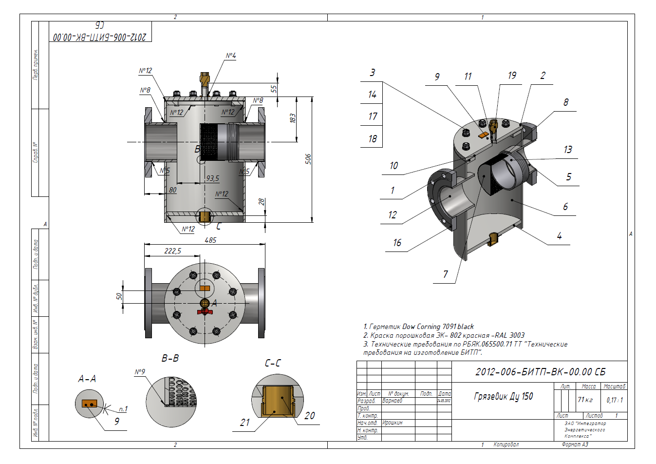 Участвовал в разработке новой модели грязевика, был ответственным в этом проекте за выпуск КД, подбор и согласование материалов для производства, решение вопросов с производством