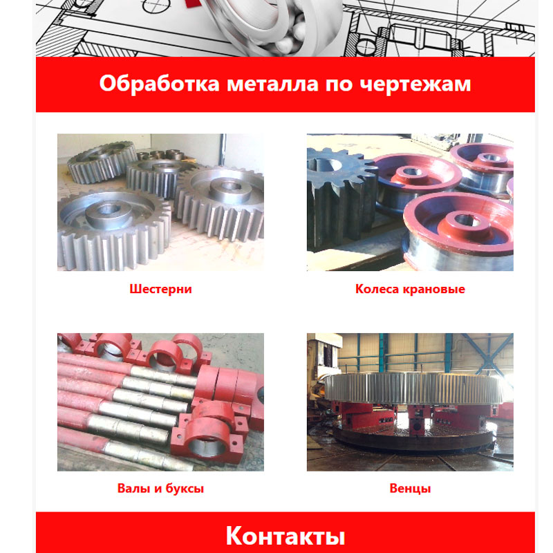 - B2B сегмент - промышленное оборудование, металлообработка, крановое оборудование, (башенные козловые, мостовые), нестандартное оборудование шестерни (косозубые, прямозубые, конические, цилиндрические) пуансоны, матрицы, валы, бесконтактные датчики, бесконтактная автоматика (индуктивные, емкостные, герконовые, оптические;