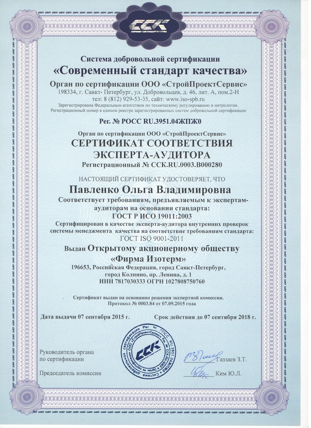Знание нормативной документации (ГОСТ, EN). Высокая работоспособность, коммуникабельность, ответственное отношение к выполняемой работе. Опыт в создании отдела с "0". Сертификация по ISO 9001-2011. Подготовка по программе "Требования ИСО/ТУ 16949:2009 к системам менеджмента качества предприятий автомобильной промышленности. Сертификат внутреннего эксперта-аудитора № ССК.RU.0003.В000280 по ГОСТ Р ИСО 19011:2003; ГОСТ ISO 9001-2011