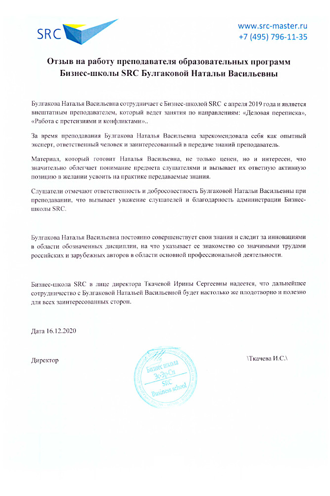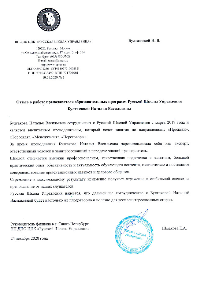 - Проведение бизнес-тренингов по направлениям «Продажи и работа с клиентами», «Тайм-менеджмент»; "Развитие управленческих навыков", "Деловая переписка".